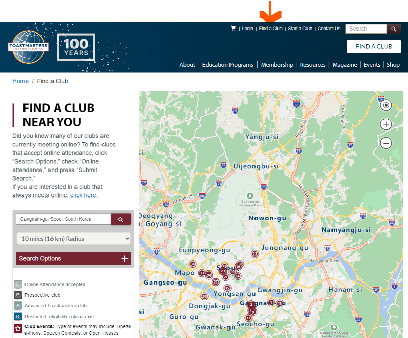 자, 그럼 영어를 잘해보고 싶다는 마음이 생기셨나요? 이 글을 닫기 전에 내가 사는 곳 근처에도 Toastmasters International이 있는지, 궁금하신 분!!! 한번 찾아보실래요? 내 주변에 생각보다 얼마나 많은지.