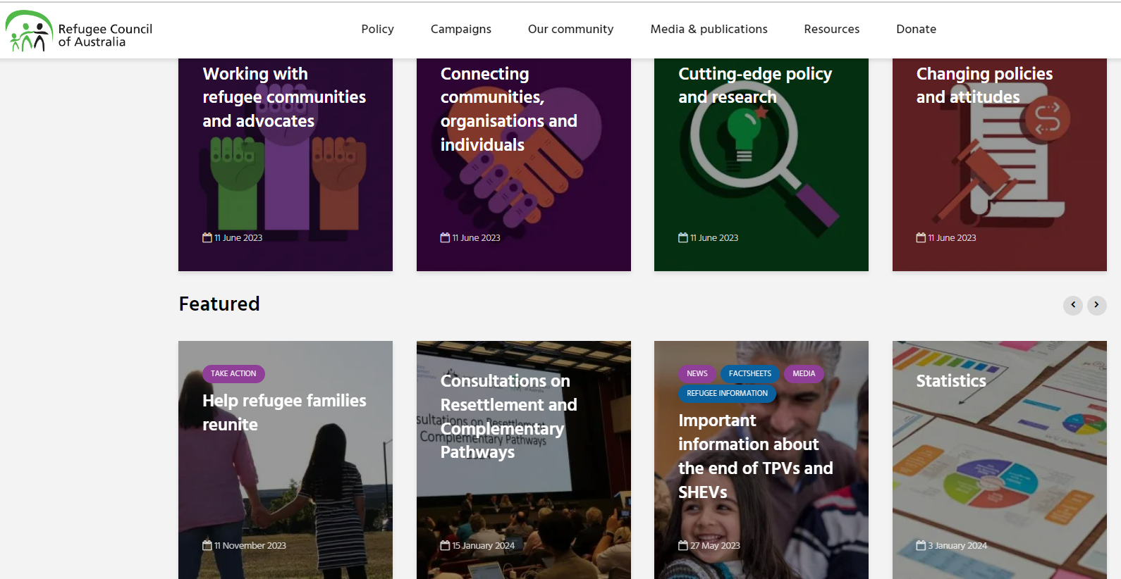 - Refugee Council of Australia는 난민들을 보호하고 그 에 맞는 정책과 서비스를 제공하기 위해 만들어진 비영리 기관으로 실제 정부의 난민 정책과 난민들을 지지, 변호하기 위해 여러 가지 활동을 합니다.