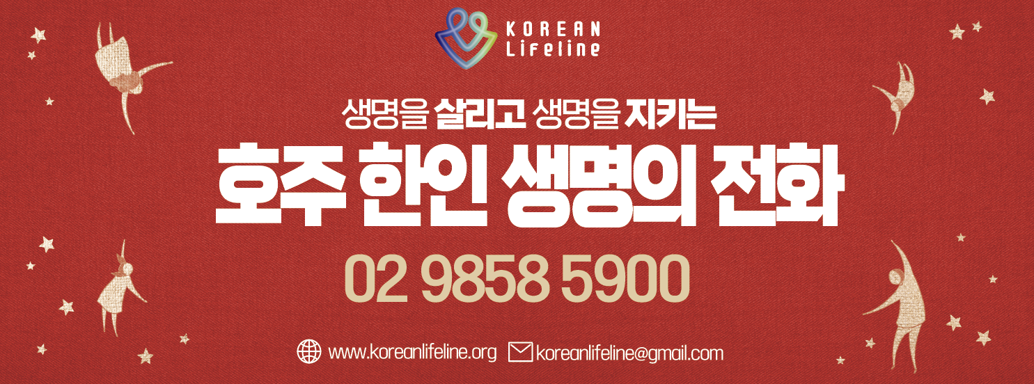 누구나 인생에서 어려움을 겪을 수 있습니다. 그러나 그 어려움을 혼자 감당할 필요는 없습니다. 호주 한인 생명의 전화(Korean Lifeline)를 통해 전문가의 상담과 정서적 지원을 받아보세요. 여러분의 고민을 나누고, 다시 희망을 찾을 수 있도록 도움을 받으시길 바랍니다.
